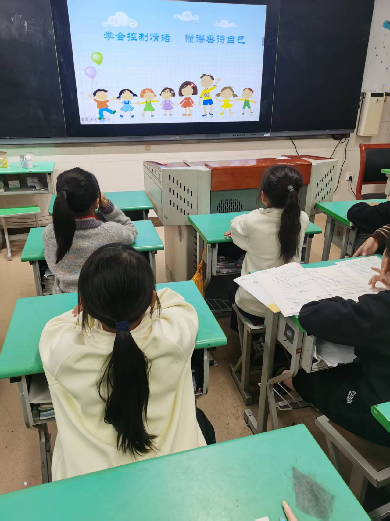 学会控制情绪,懂得善待自己 ——四6班开展心理健康主题班会 为帮助学生认识情绪、管理情绪,培养积极乐观的心态,11月20日下午,四6班组织开展了以“学会控制情绪,懂得善待自己”为主题的心理健康教育班会活动。 班会中,班主任结合小学生年龄特点,通过情景模拟、情绪卡片、故事分享等形式,引导学生识别常见的情绪类型,如开心、生气、难过、焦虑等。在“情绪温度计”小游戏中,同学们用不同颜色的贴纸标记自己当天的情绪状态,并勇敢地分享自己的感受。班主任强调:“情绪没有对错,但表达和处理情绪的方式很重要。” 随后,老师向同学们传授了简单实用的情绪调节方法:深呼吸、倾诉、运动、画画等。小李同学说:“以前我生气时会摔东西,现在知道可以先深呼吸,或者找朋友聊聊,感觉好多了。”班会最后,全体同学共同朗诵了《善待自己》的诗歌,在温暖的氛围中学会接纳自己、关爱自己。 本次班会不仅提升了学生的情绪理能力,也营造了尊重、理解、支持的班级心理氛围。学校将持续开展心理健康教育活动,助力每一位学生健康、快乐、自信地成长。 撰稿、摄影:黄小莉